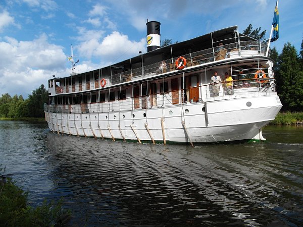 We joined the ship at the next lock, ready to cross Lake Vänern which is Sweden's largest lake and Europe's third-largest (we had already crossed the two larger ones, Ladoga and Onega, on our Russian trips - as well as the sixth largest, Vättern, the day before - so now I suppose we will have to visit Finland and Estonia for the 4th and 5th). Luckily the weather was still extremely good, for this huge lake can become quite rough in bad weather.
