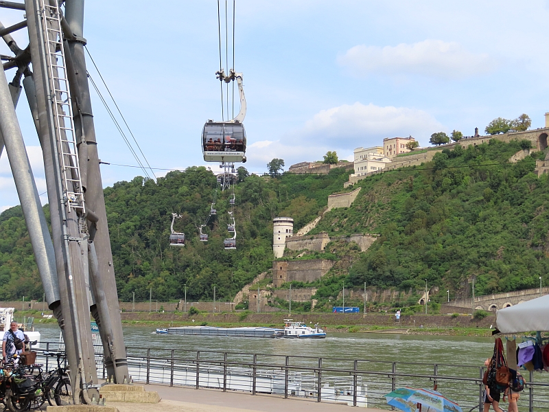 The next day we arrived at Koblenz. We had visited this town on our previous Rhine cruise so, rather than join the main tour group, we boarded a cable-car which had not been in place when we visited before. This gave us superb views of the Rhine as we travelled across the river and up to the huge 1000-year-old fortress on top of the cliffs. The fortress itself was in very good condition, but we found the associated museum to be rather disappointing, with not many exhibits and no interesting themes to join them together.