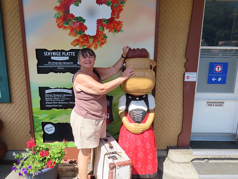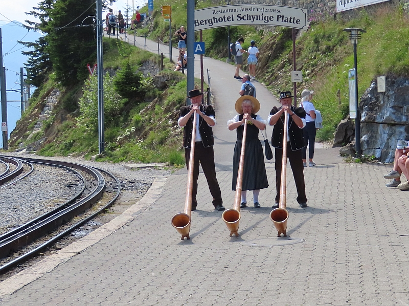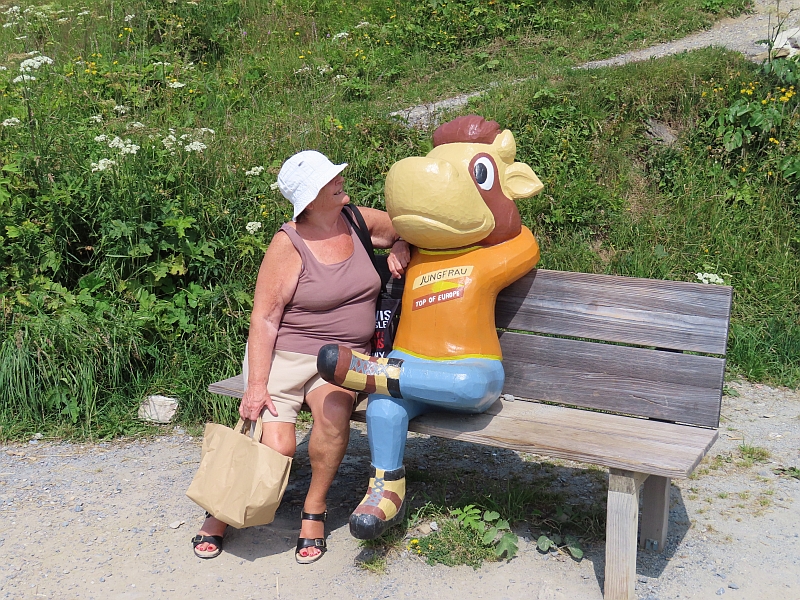 Our short stay at the top of the mountain was simply amazing. The weather was perfect, allowing us fabulous views of the scenery around us. It felt as if we were up there with the clouds - except that fortunately there were hardly any - as we wandered around the Alpine flower gardens and enjoyed the bright sunshine that reflected from the snowy peaks around us. We had time to drink a cup of coffee and buy a couple of souvenirs before catching the train back down to the foot of the mountain.